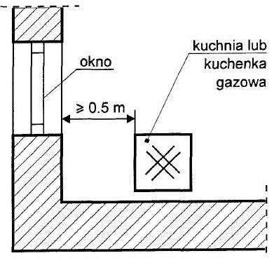 Czy jest gdzieś w przepisach wyznaczona minimalna odległość kuchni gazowej od krawędzi okna. W rozporządzeniu dot. Kuchenka gazowa w kuchni: w odpowiedniej odległości.